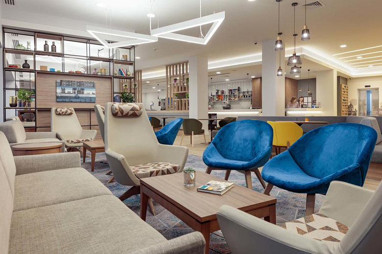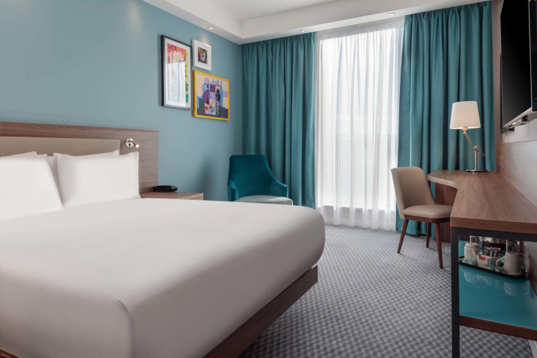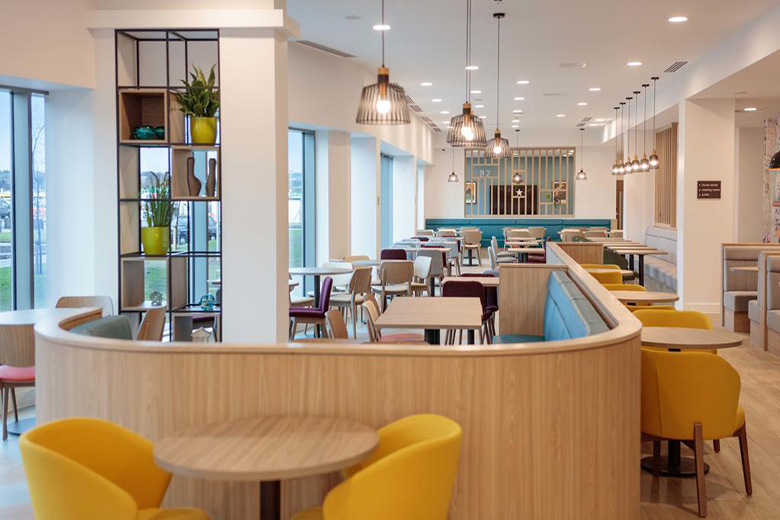 The hotel offers a complimentary buffet of hot and cold items each morning, including waffles, pastries and a selection of cereals. A 24-hour menu is also available in the hotel, offering a variety of snacks and drinks.