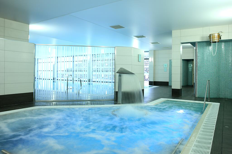 Guests can relax in the sauna, steam room or hydrotherapy pool in the luxurious spa. The health club also has a swimming pool with feature fountains, a fully equipped gym and treatment rooms.